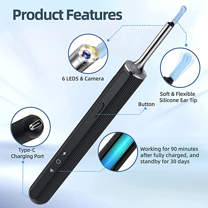 Compatible with IOS & Android systems-Download the APP in the instruction manual. Press and hold the power button to turn it on, connect the earwax removal camera via WiFi, and you can start using it.