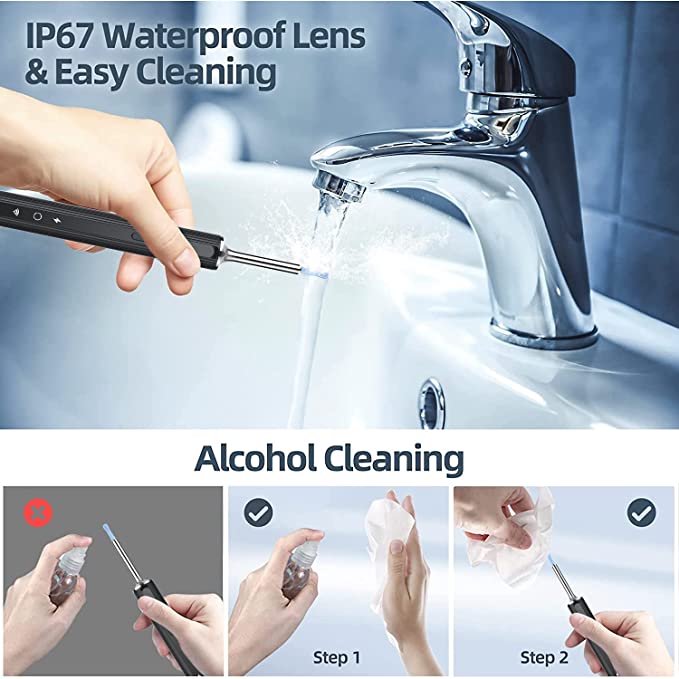 Easy to clean-The ear scoop part and waterproof lens of the earwax remover can be washed with water. Note: Do not put the entire otoscope in water.